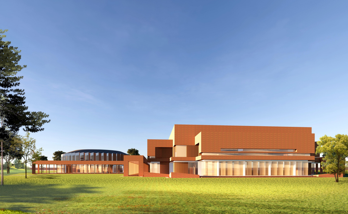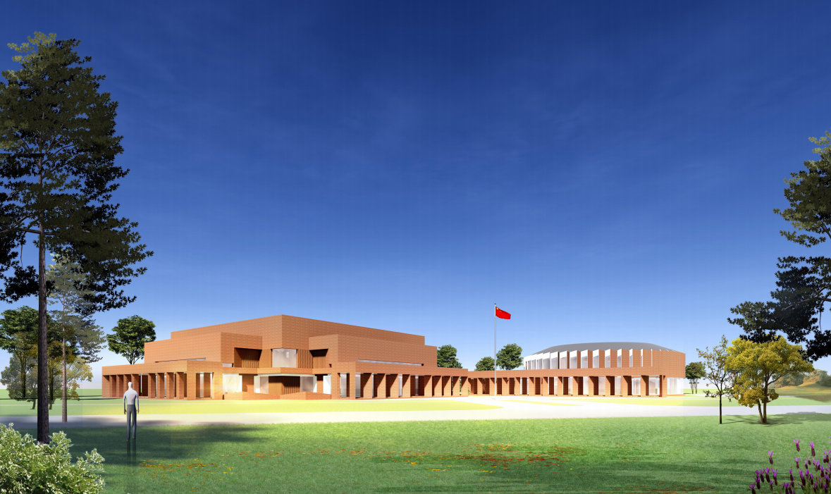 l 技術亮點:超大塊鋸齒形全玻幕墻,鏤空清水磚幕墻;